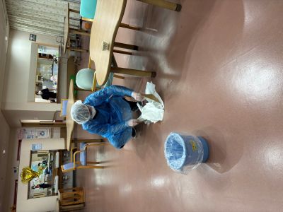 利用者の嘔吐処理係(更衣)、関節対応係(換気・個室確保・必要物品の準備)に分かれて、