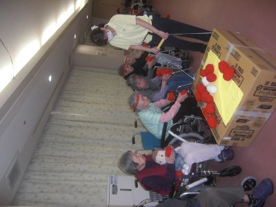 棒を使って輪っかを運んだり、動く段ボールの上に玉を乗せたりと