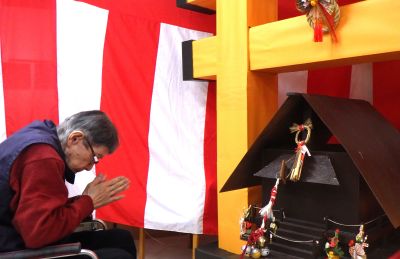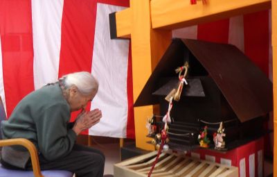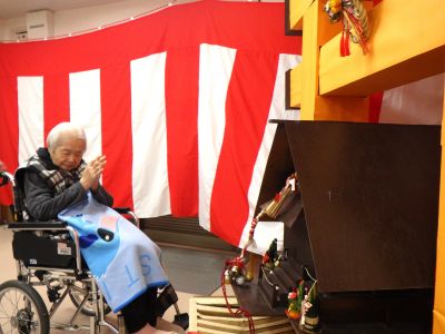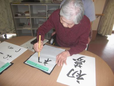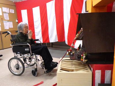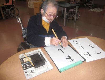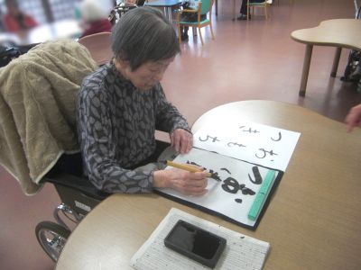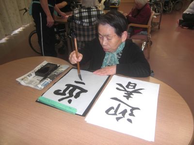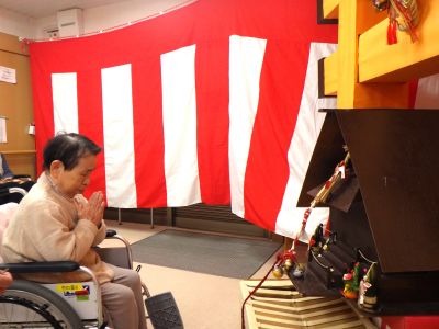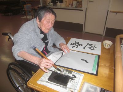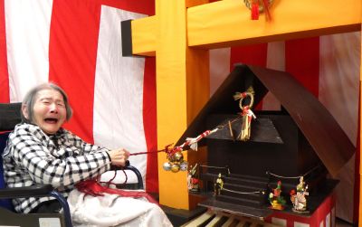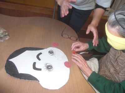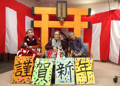 また、書初めや利用者さまが作られた福笑いをお借りし、