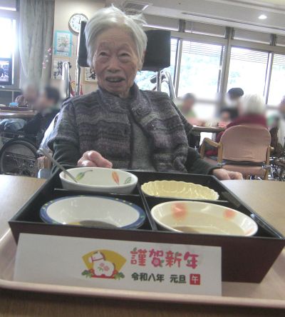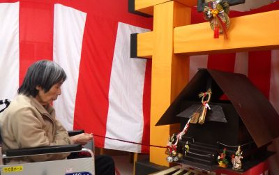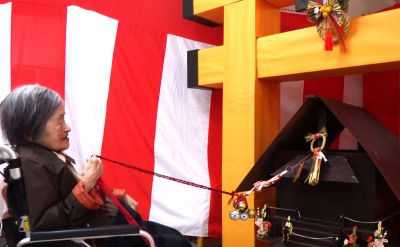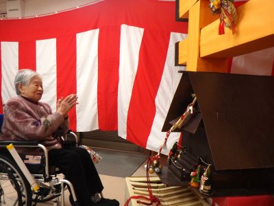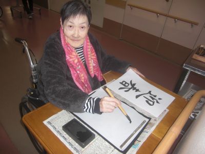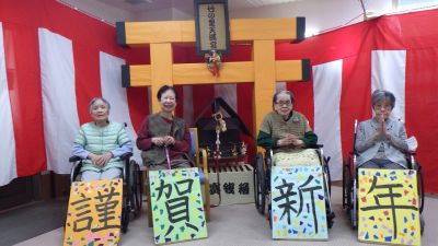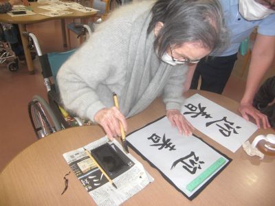 また、書初めや利用者さまが作られた福笑いをお借りし、